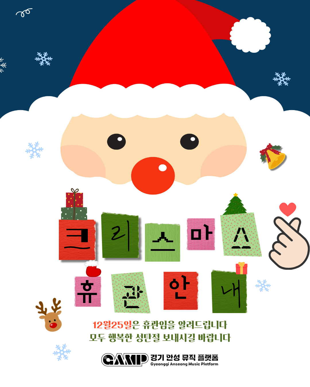 ✨ 12월 25일 크리스마스를 맞이하여 경기안성뮤직플랫폼이 휴관합니다.